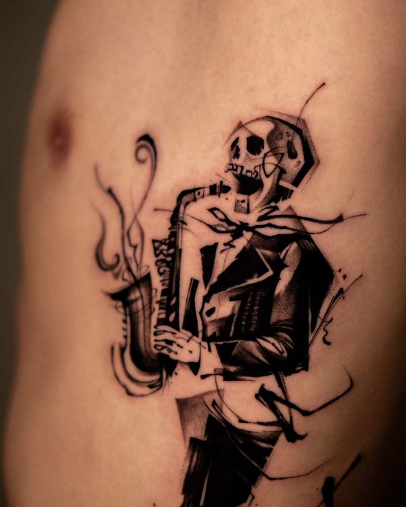 The saxophone represents the father’s favorite instrument.